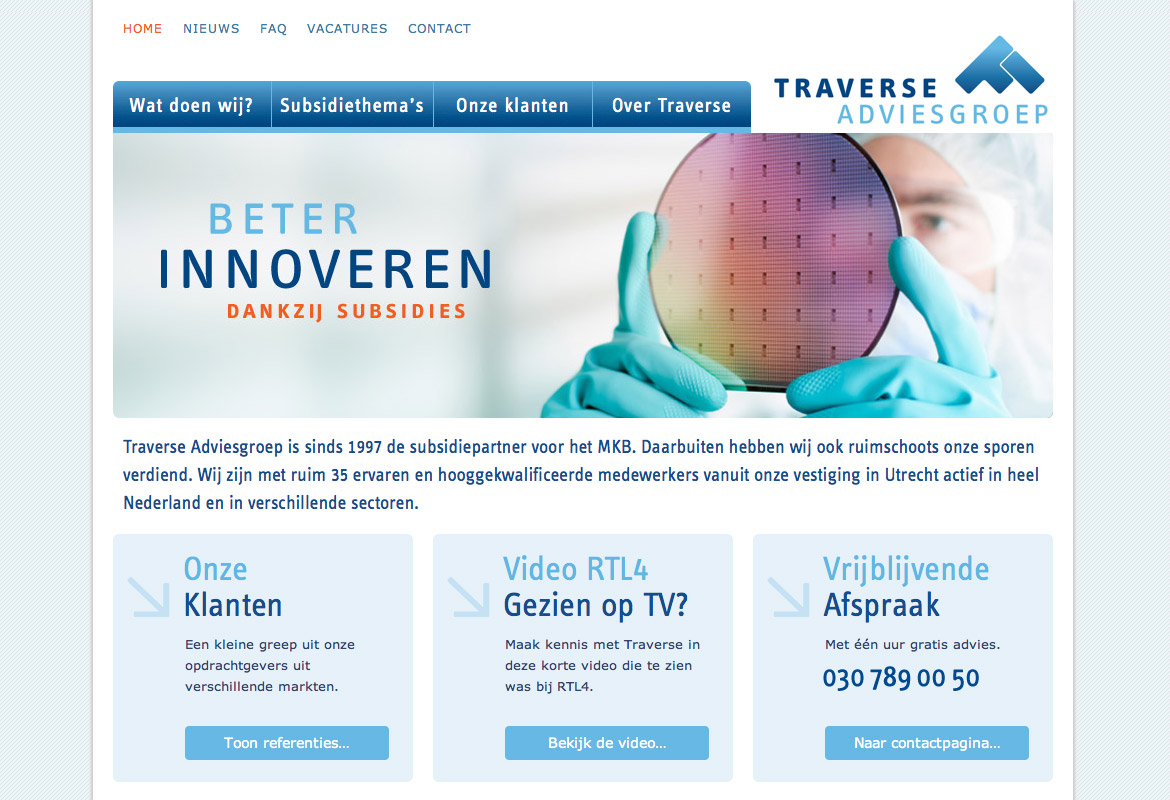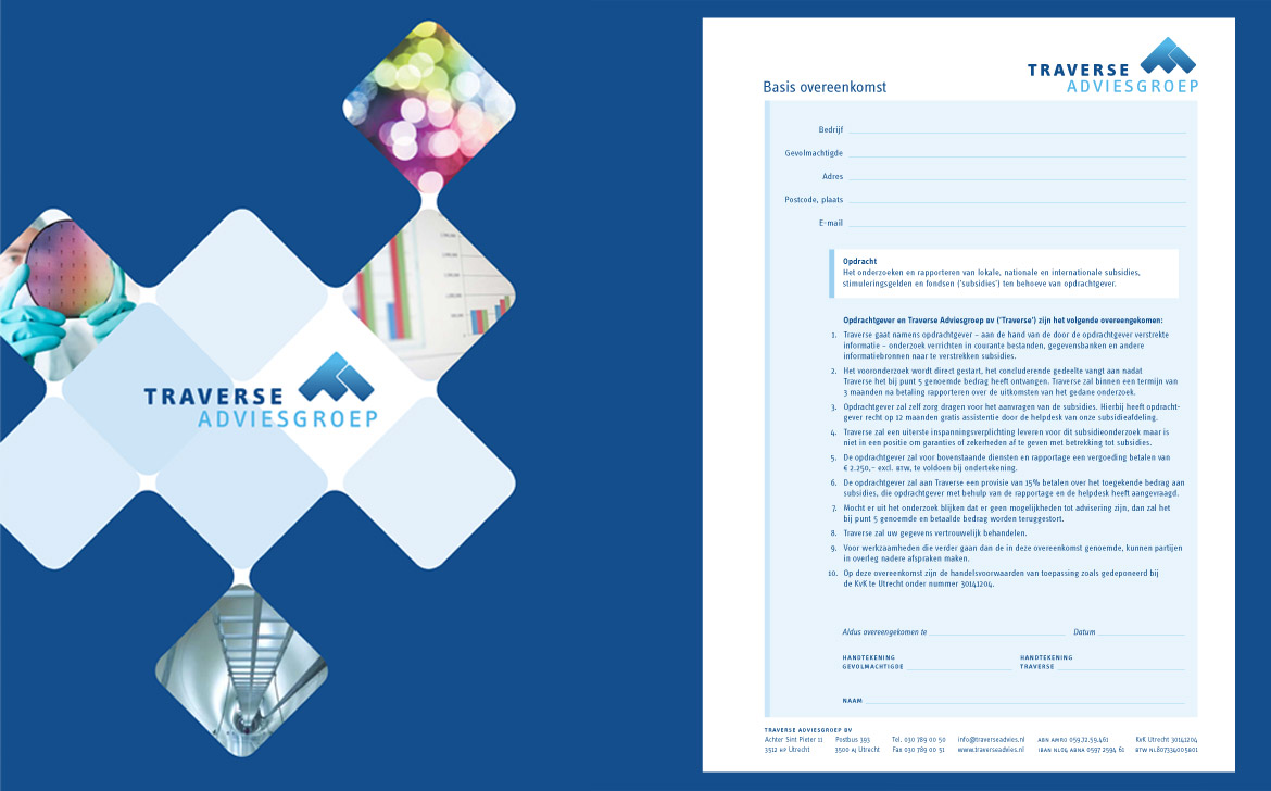 Traverse Adviesgroep is sinds 1997 de subsidiepartner voor het MKB. X41 heeft de nieuwe huisstijl ontworpen. Belangrijke taak was de vormgeving van de vele formulieren, deze zijn nu helder en typografisch verantwoord.